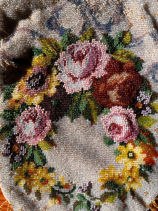 Victorian Floral Micro Beaded Fringe Purse