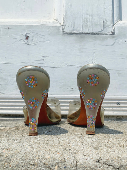 1950s Rhinestone Lucite "Spring-o-lator" Heels