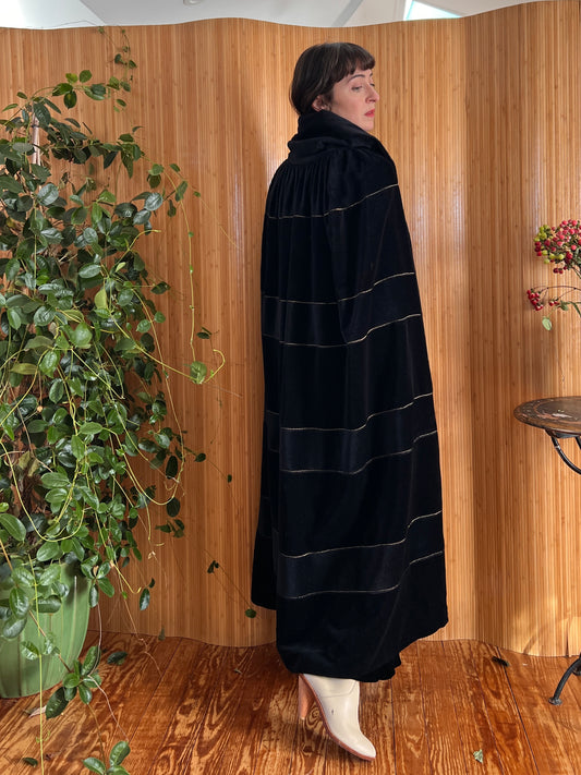 1930s Deco Navy Silk Velvet Ribbed Cloak S/M
