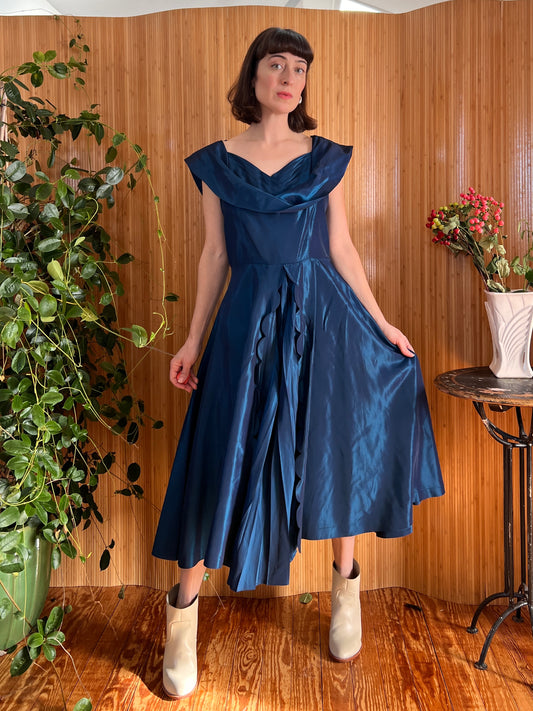 1950s Iridescent Silk Shantung Dress M