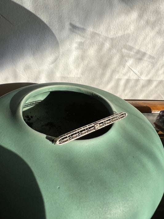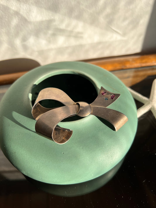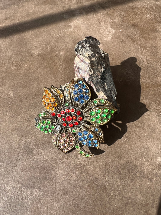 1940s Large Sterling Bow Brooch with Colored Rhinestones
