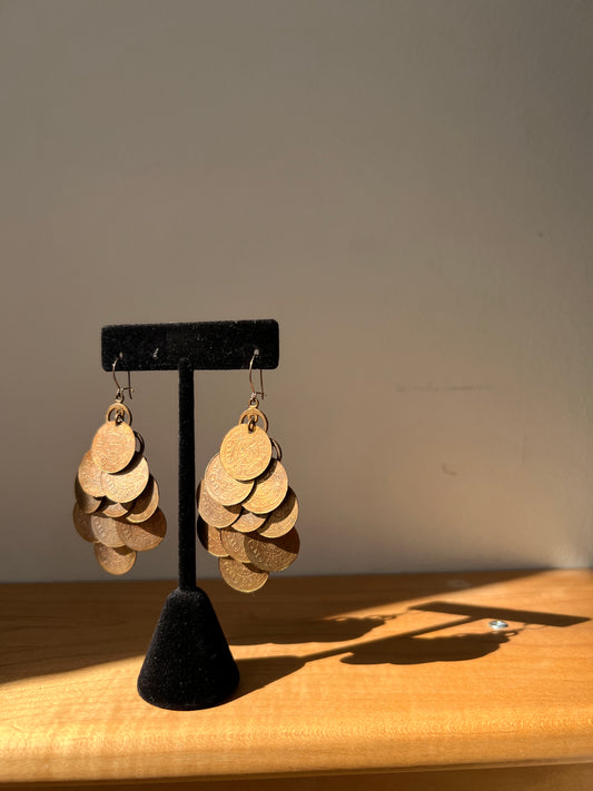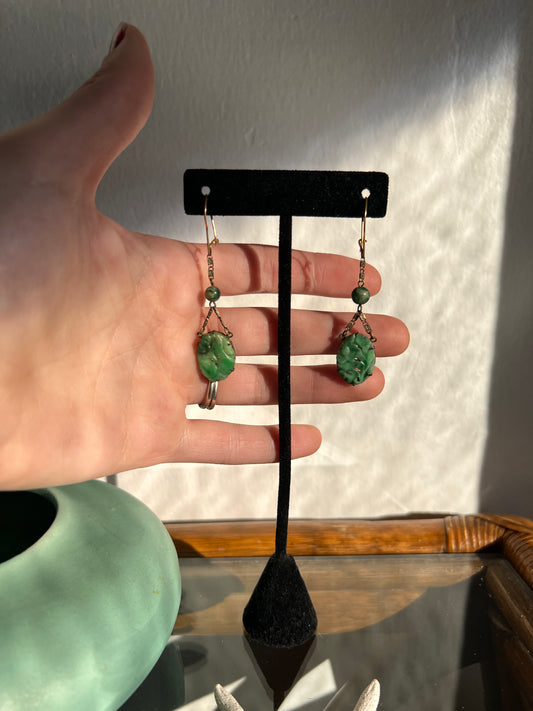 Antique Art Nouveau Carved Jade Drop Earrings 14K