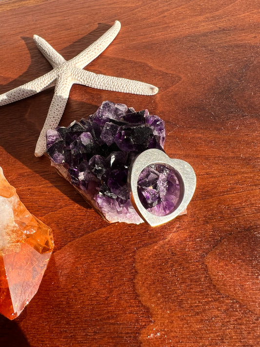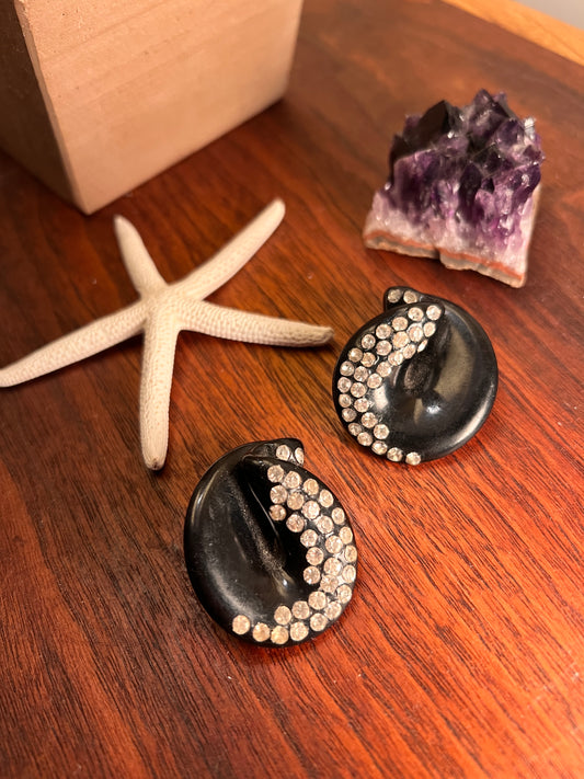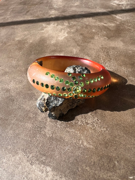 1950s Amber Lucite Clamped Bangle with Green Rhinestones