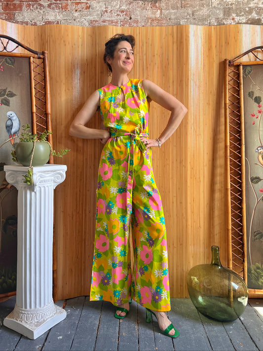 1960s Flower Power Cotton Jumpsuit by Lanz