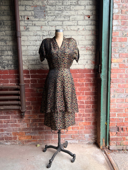 1940s Silk and Gold Thread Brocade 2-Piece Set M