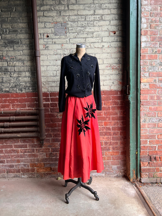 1950s Taffeta Skirt with Velvet Poinsetta L