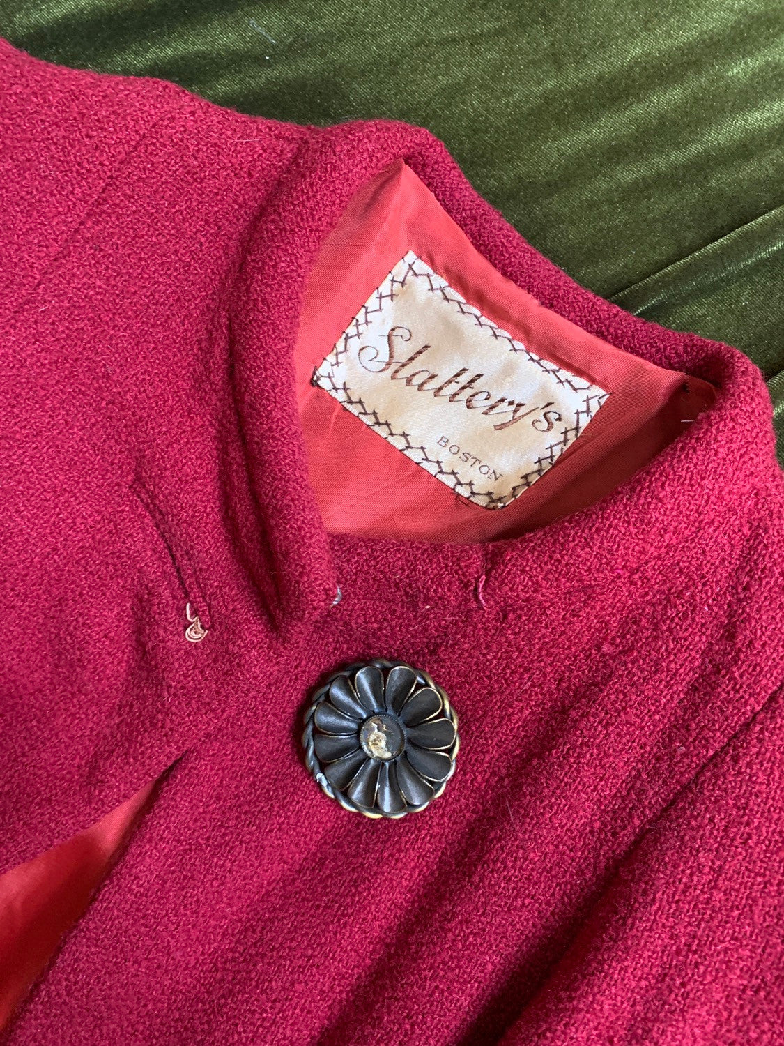 1930s Slattery's of Boston Cranberry Coat Size S/M