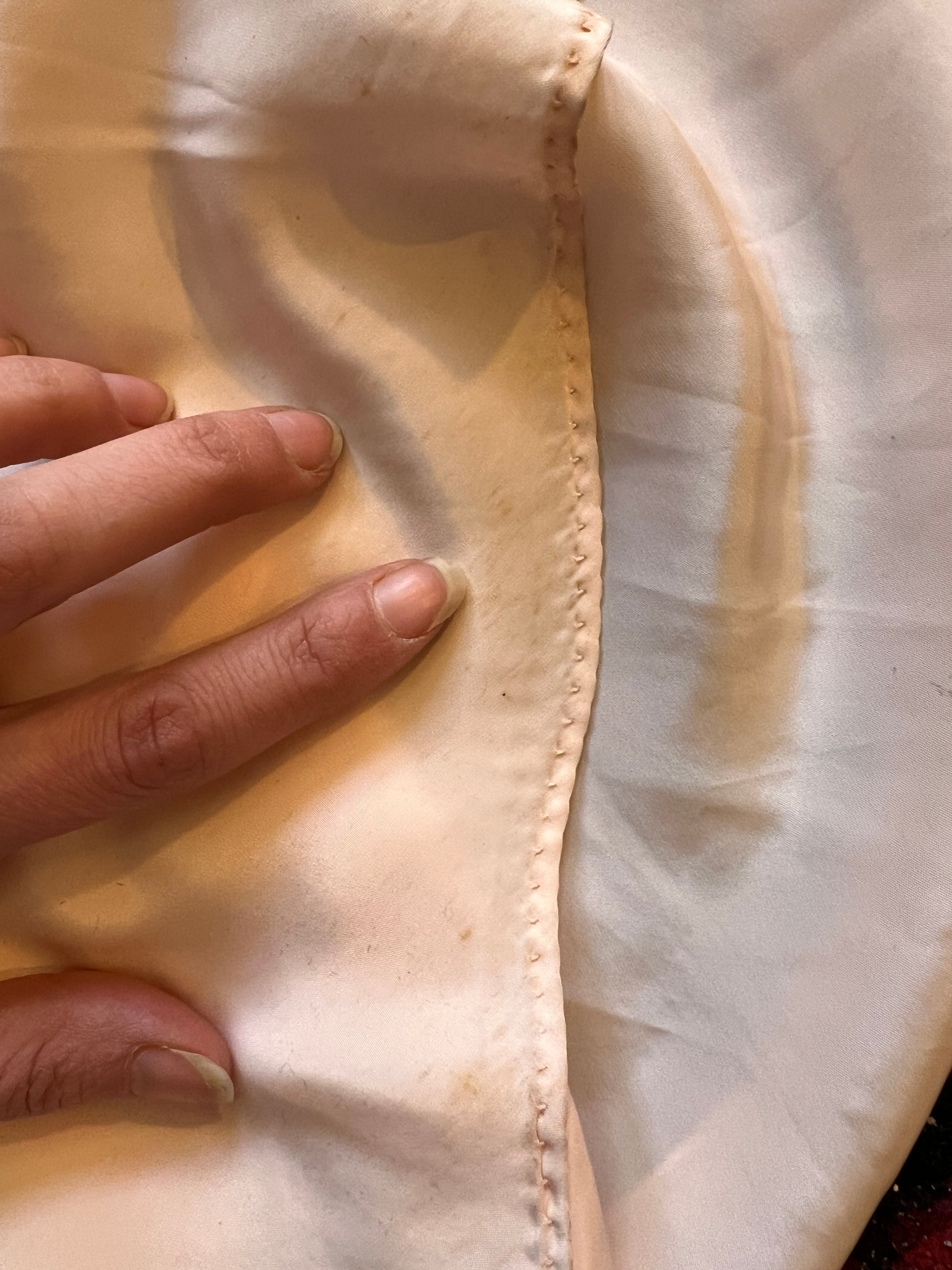 Condition: Very good. Some faint spots at hem and two small spots at back of gown. Not very noticeable when worn (see photos)