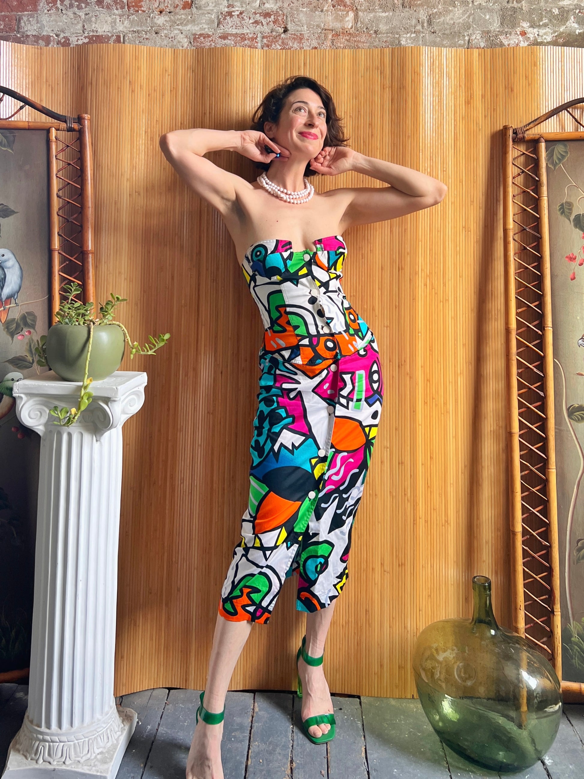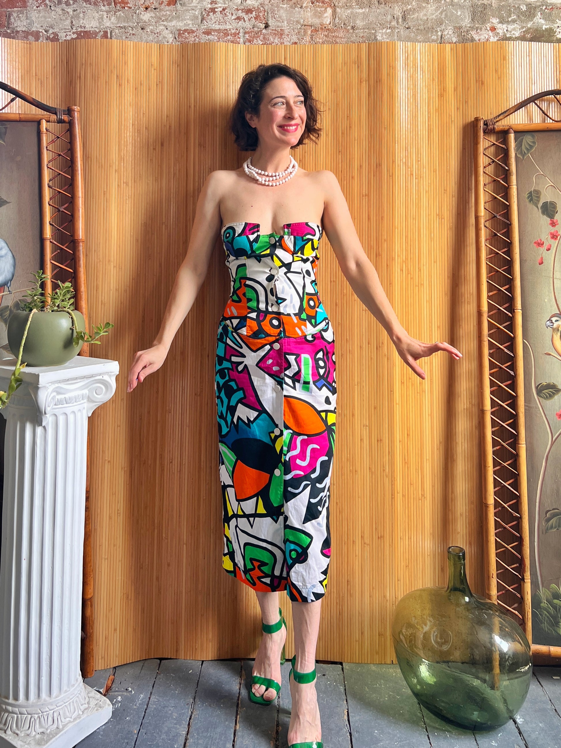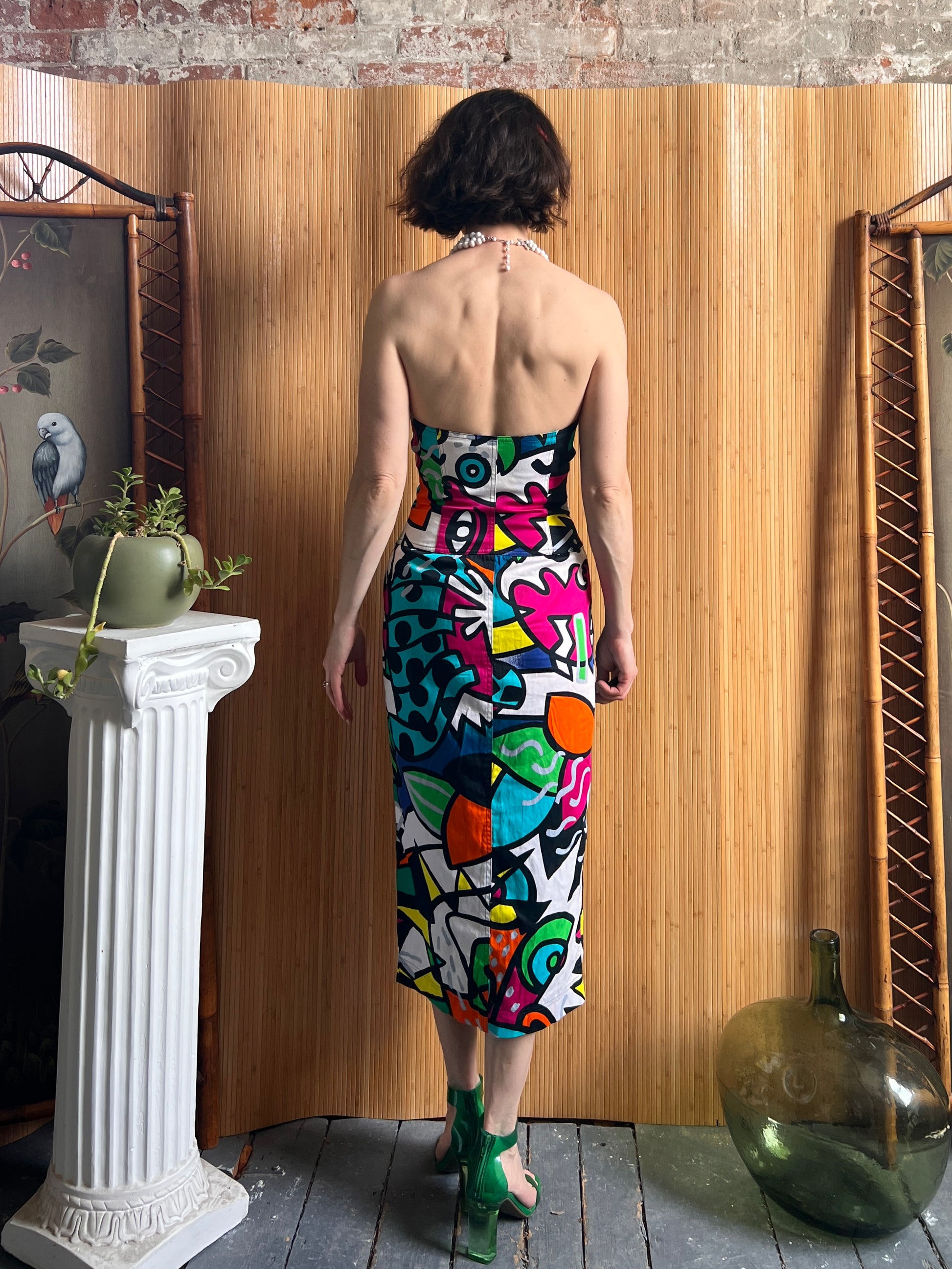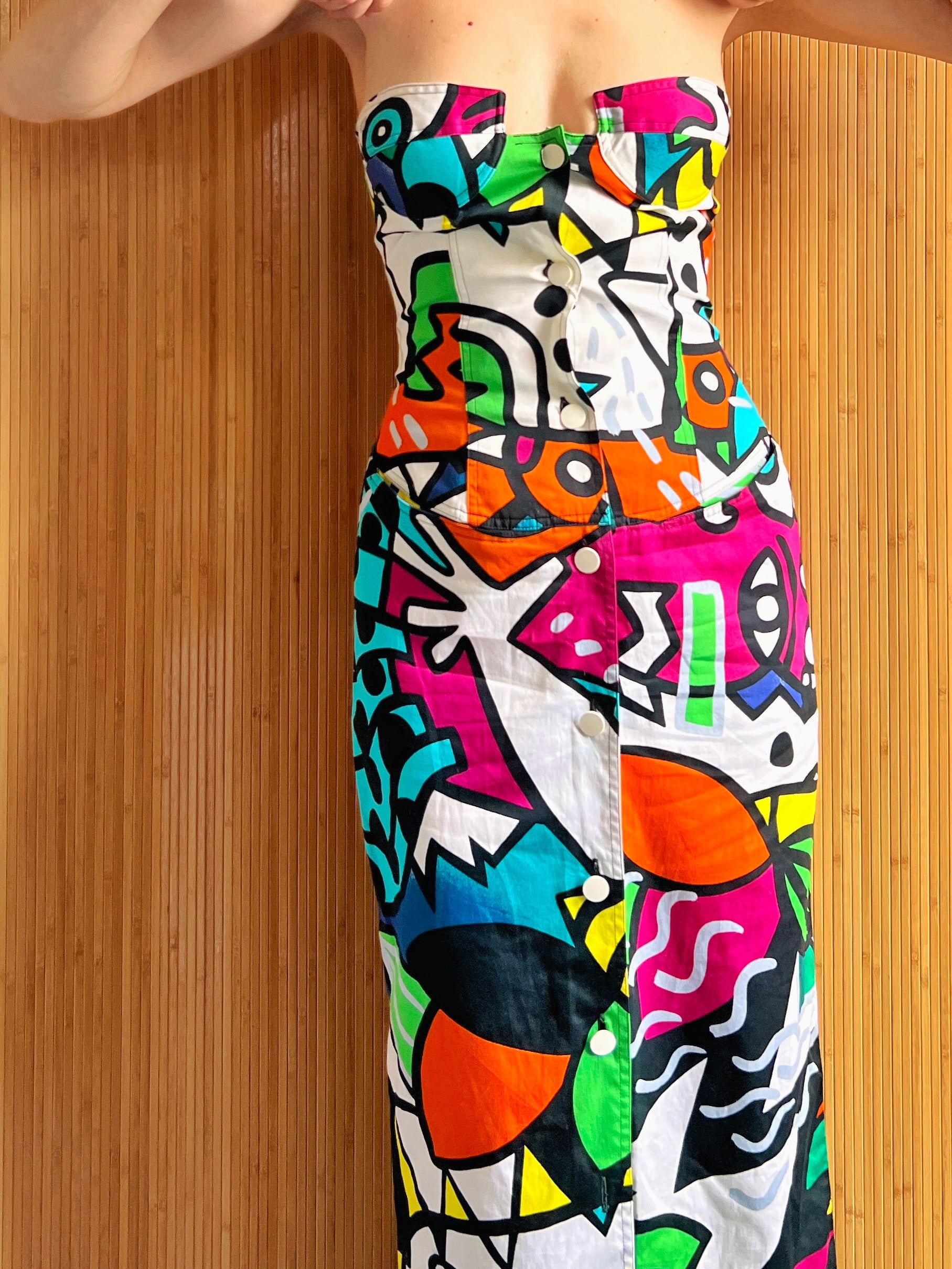 1980s Enrico Coveri Pop Art Print Corset Dress XS/S