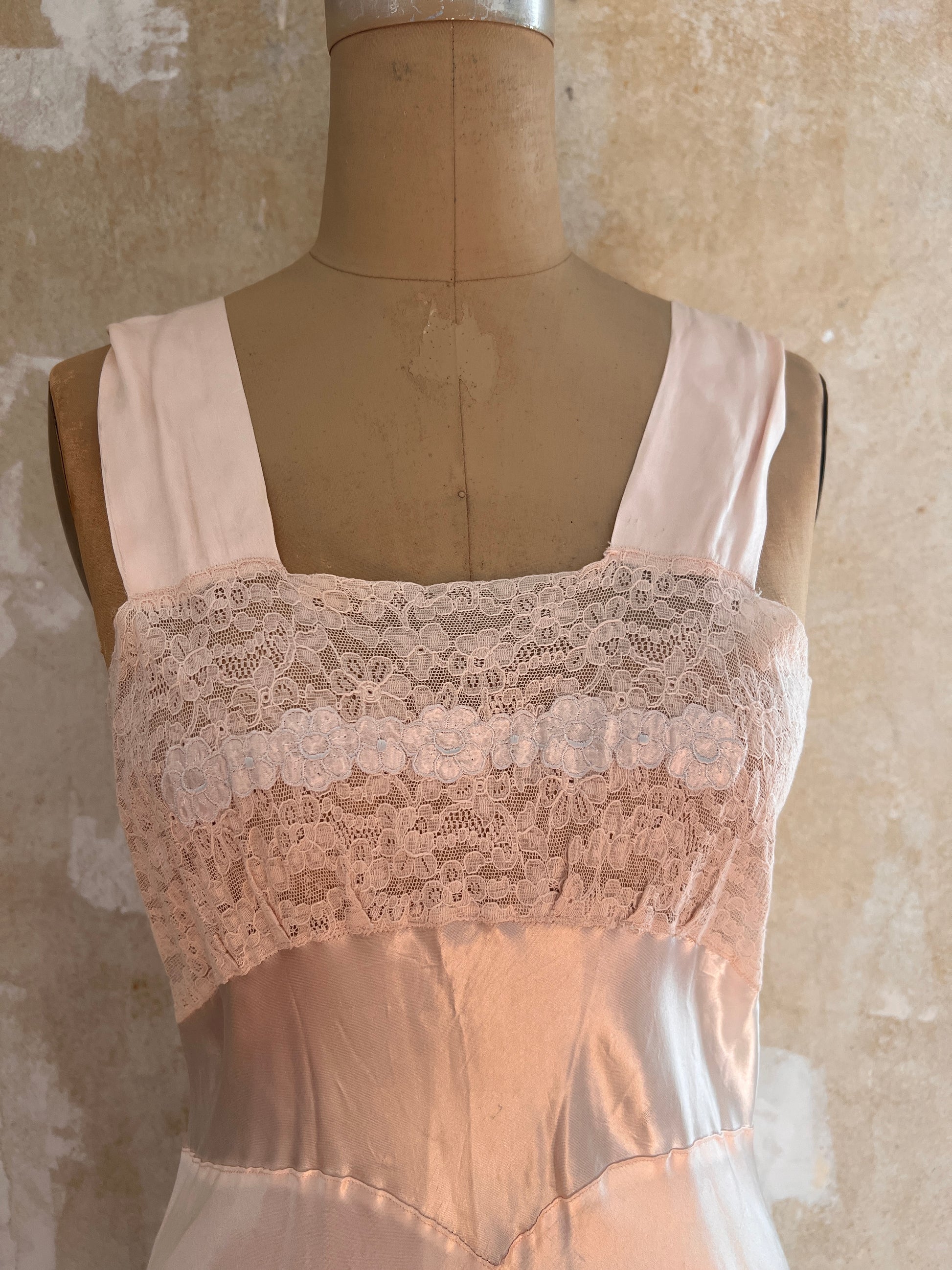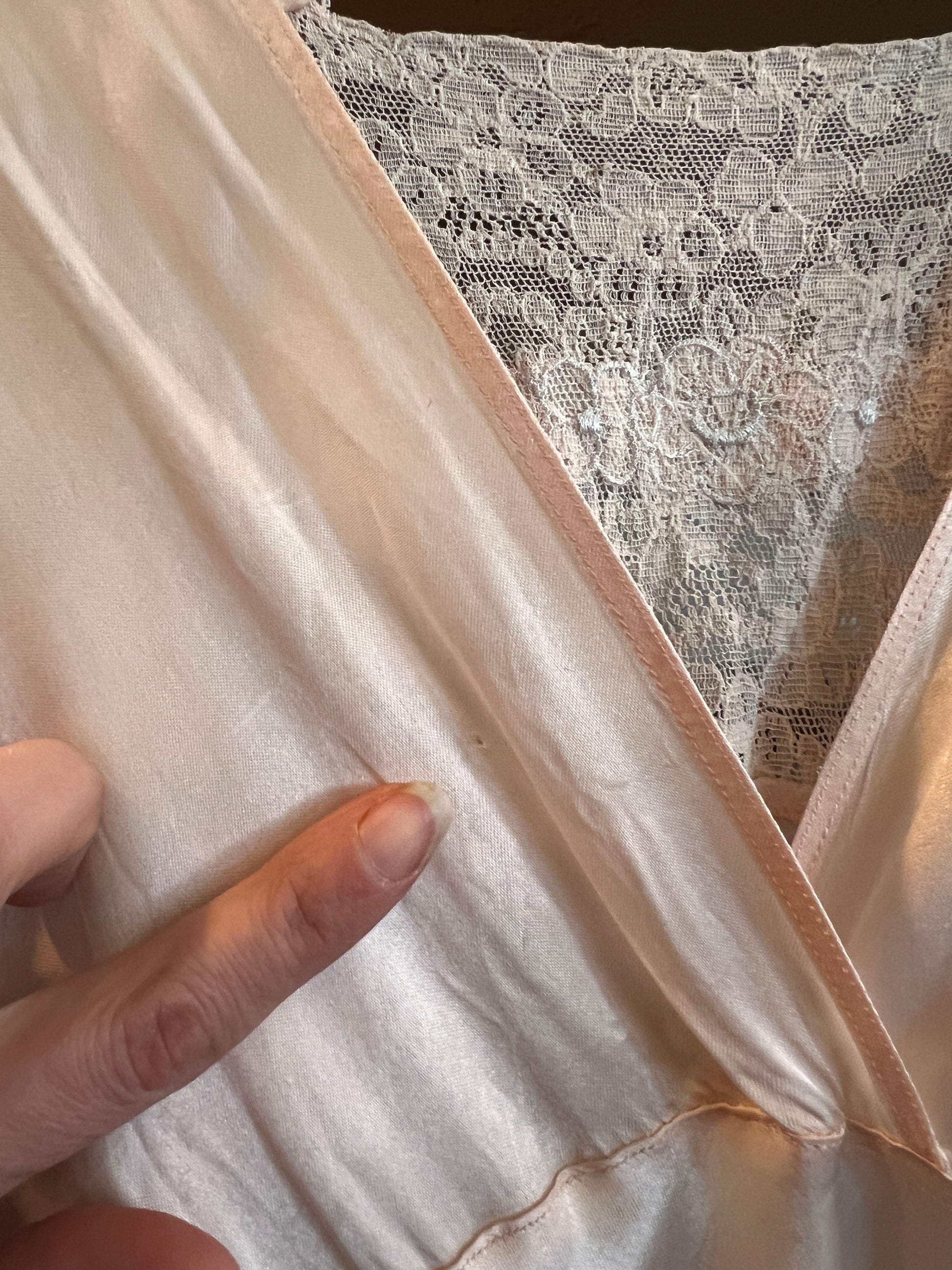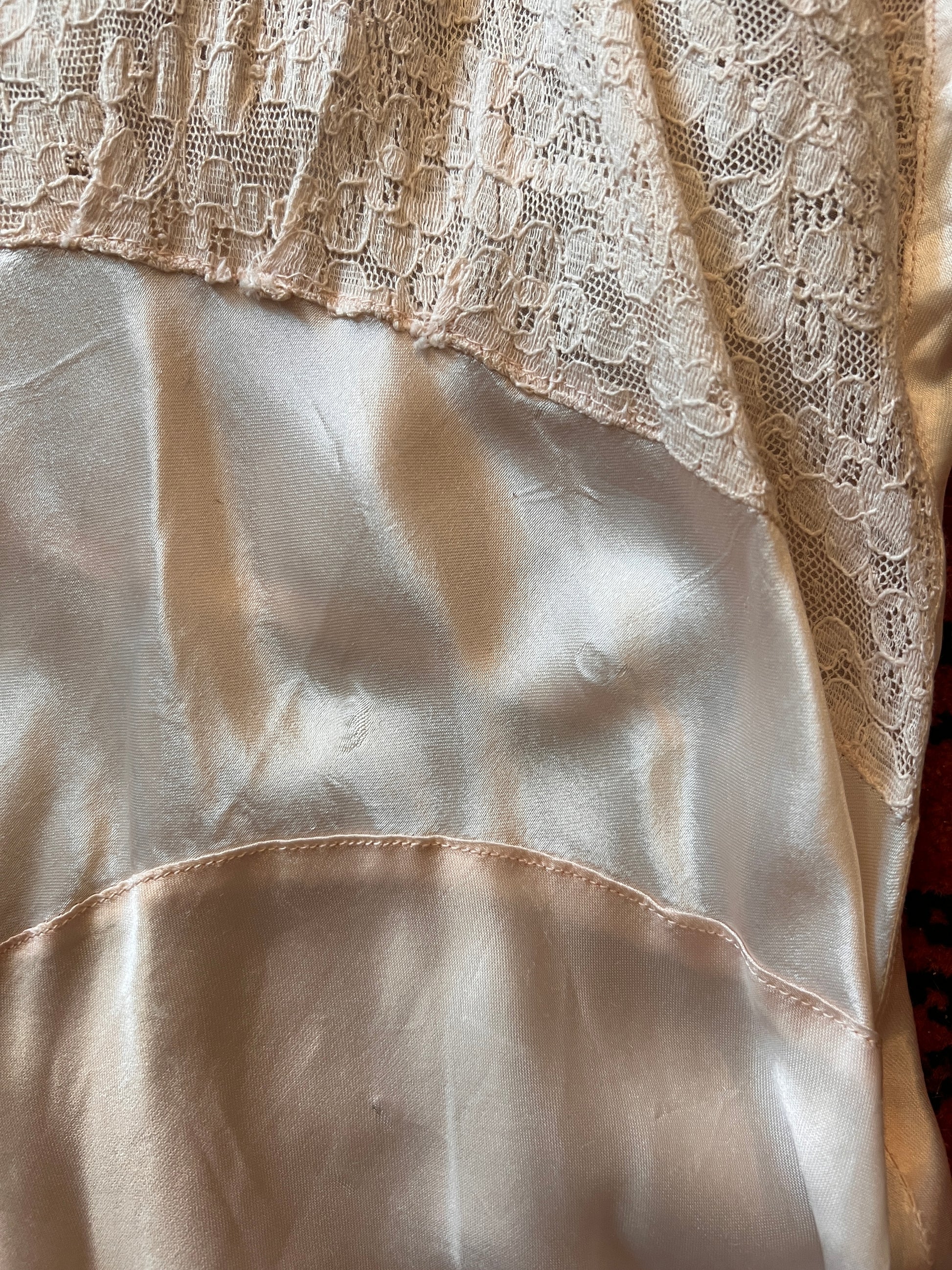 1930s Opalescent Bias Cut Silk and Lace Slip Dress S/M