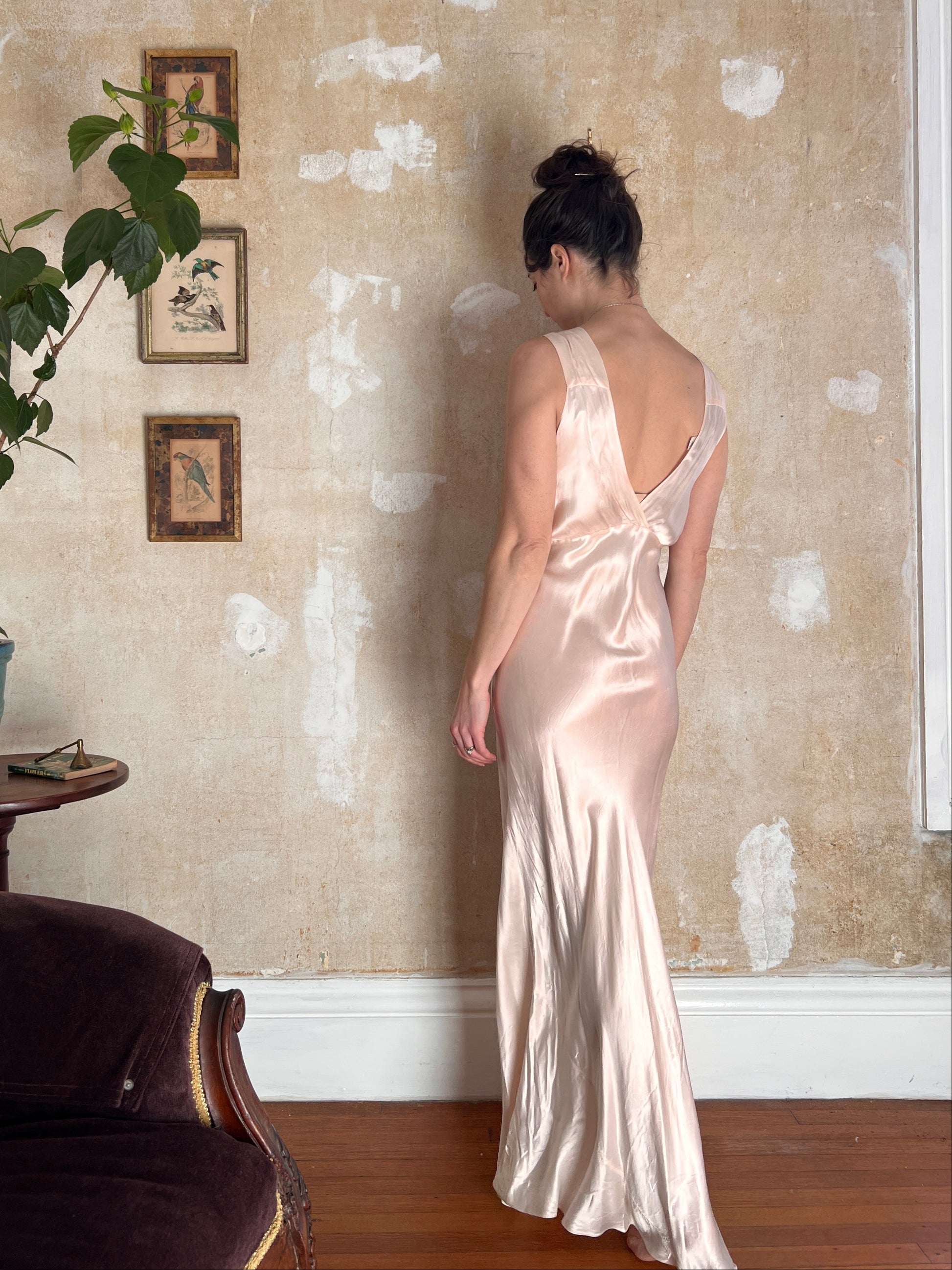 Condition: Very good. A pin prick on back and a couple of subtle water marks on front of bodice and one at back. Wears and presents beautifully.