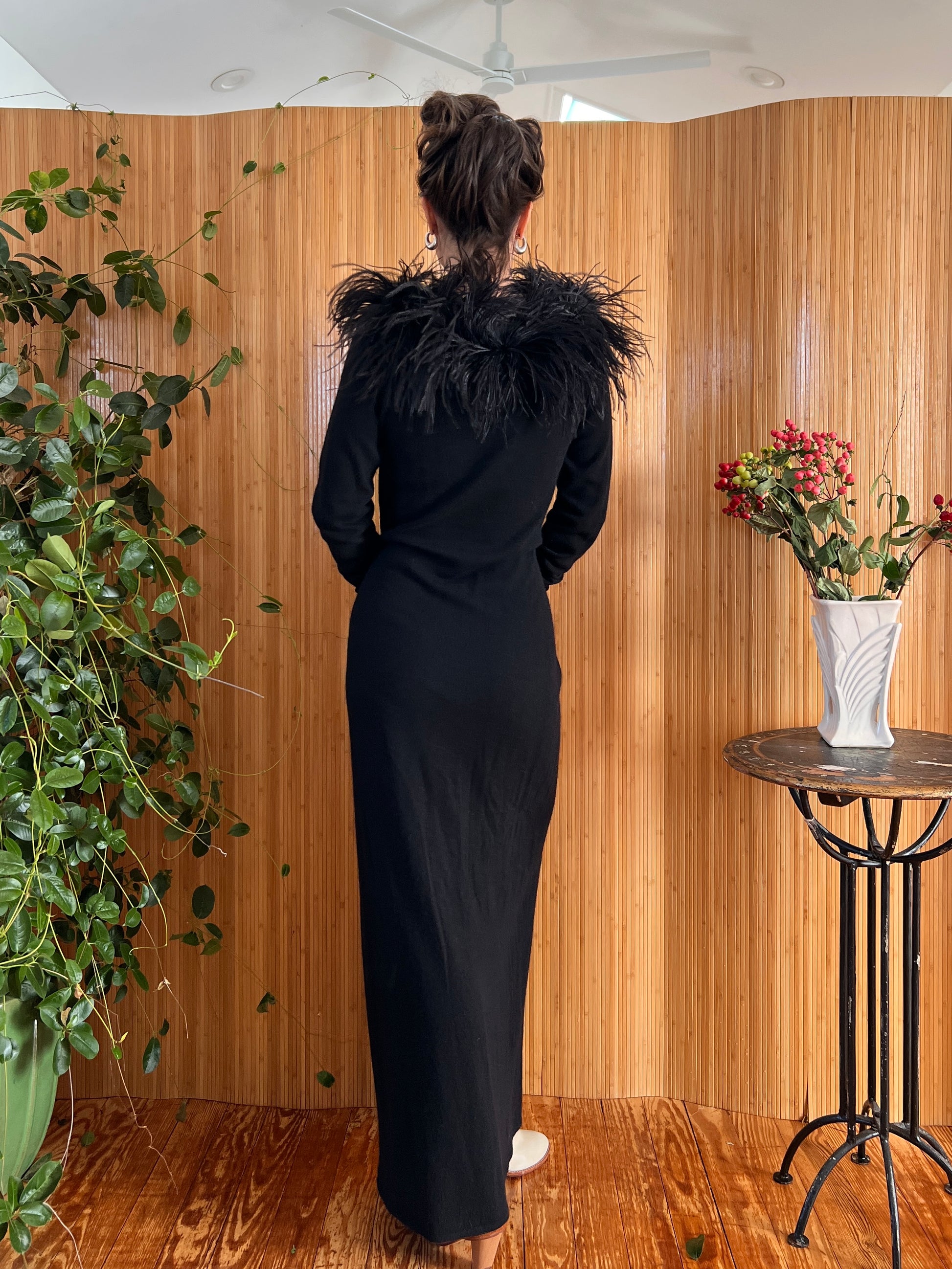 Drama, darling! Lauren by Ralph Lauren soft merino wool, rayon and angora blend maxi dress with sewn in feather collar.