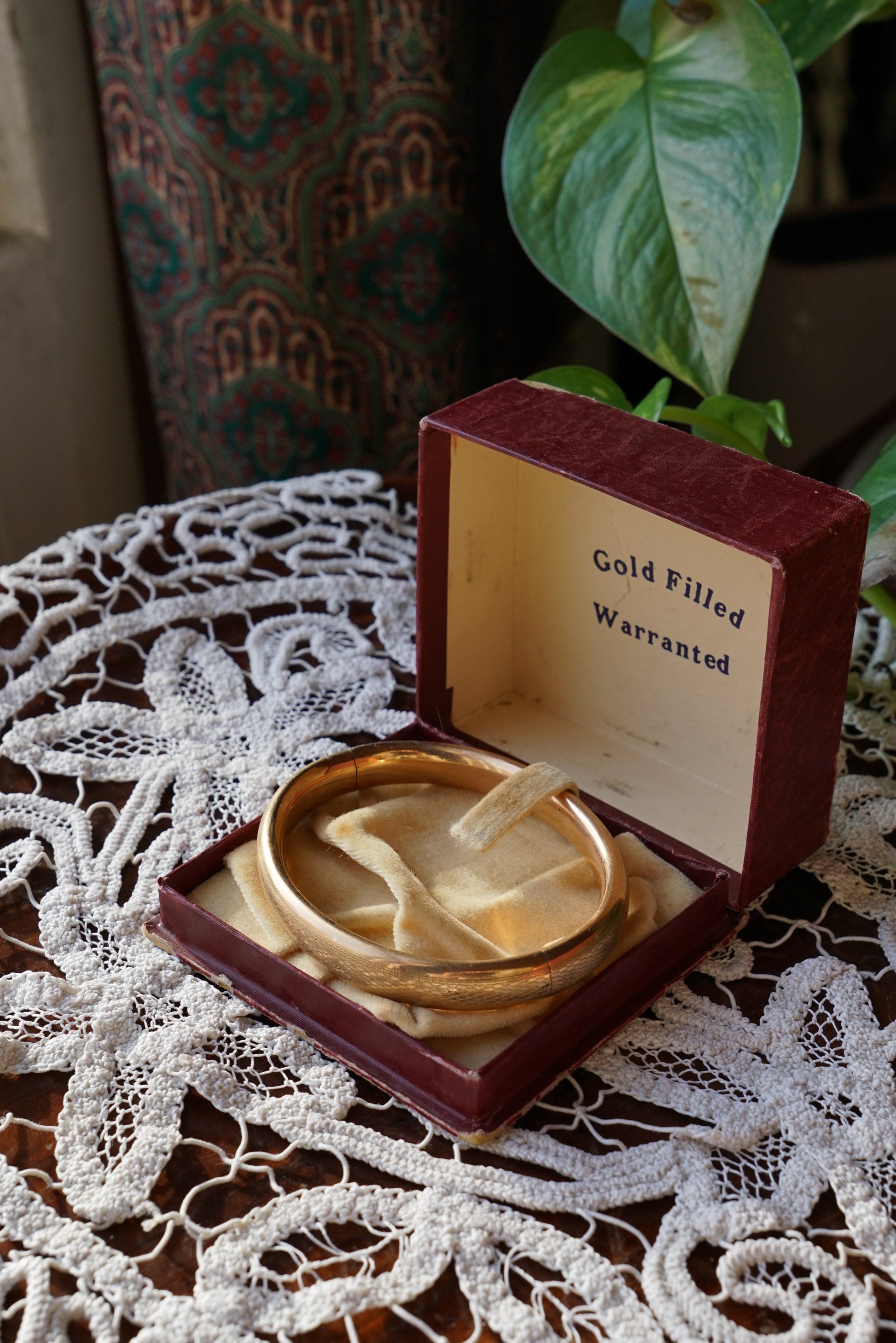 Etched Gold-Filled hinged bangle bracelet, comes with original box