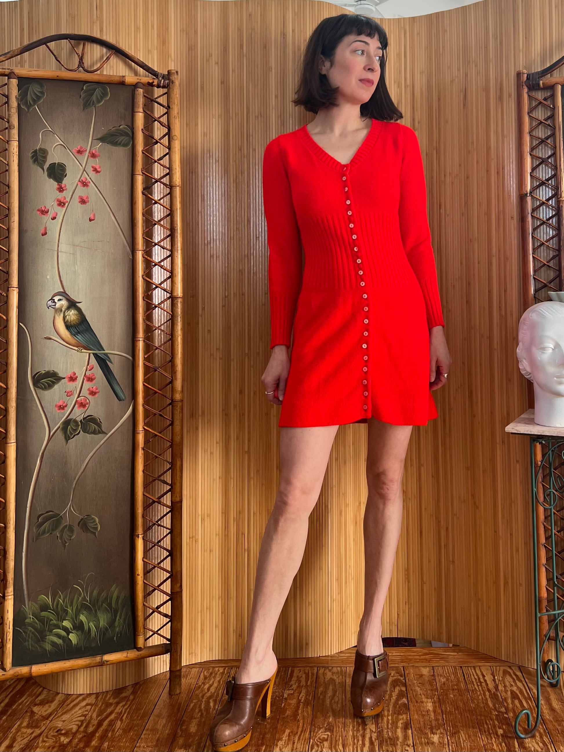 1970s Bright Red Mini Sweater Dress XS/S