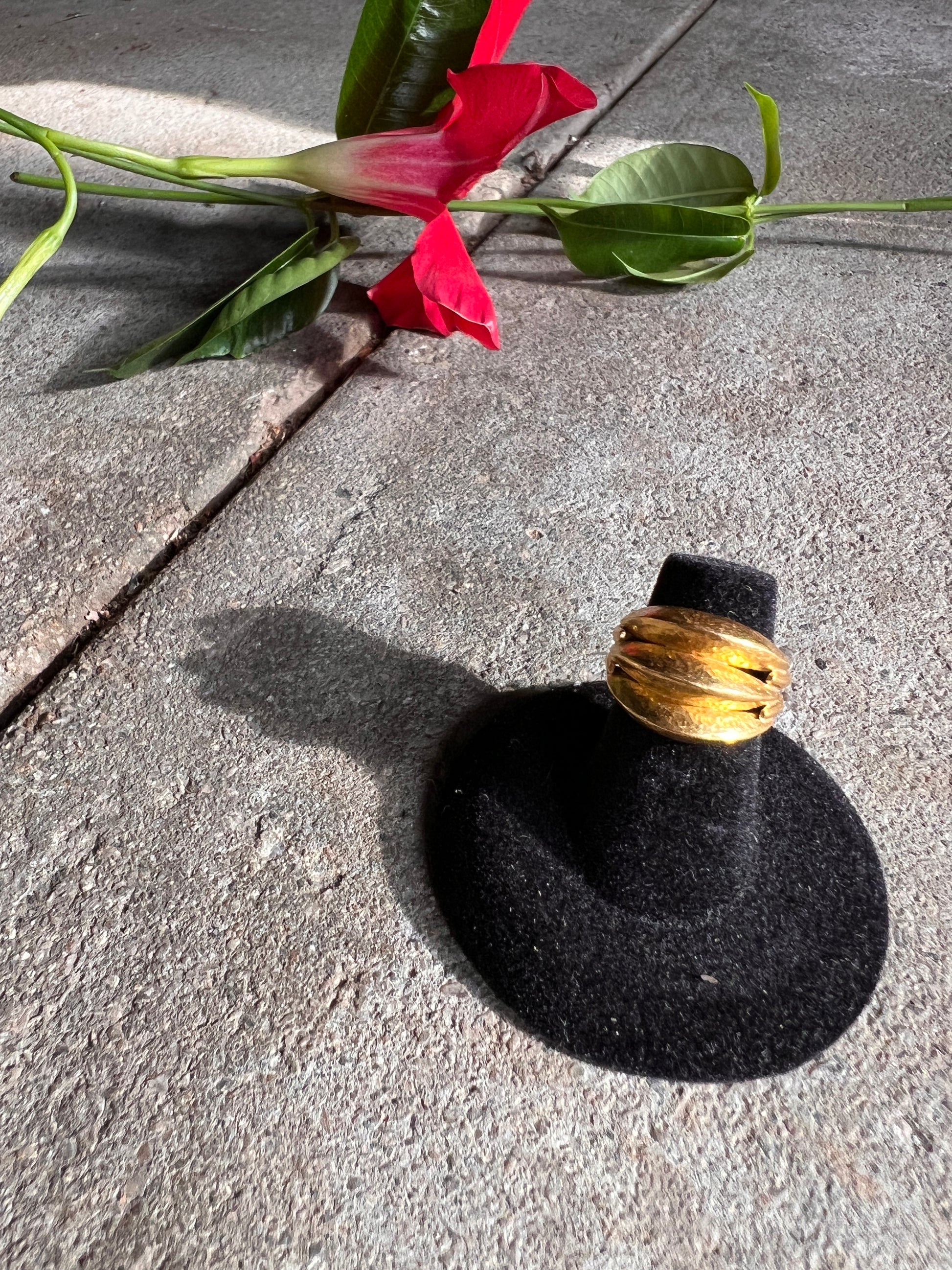 Vtg Lalaounis Hand-Hammered Triple Edge Ring 18K Gold
