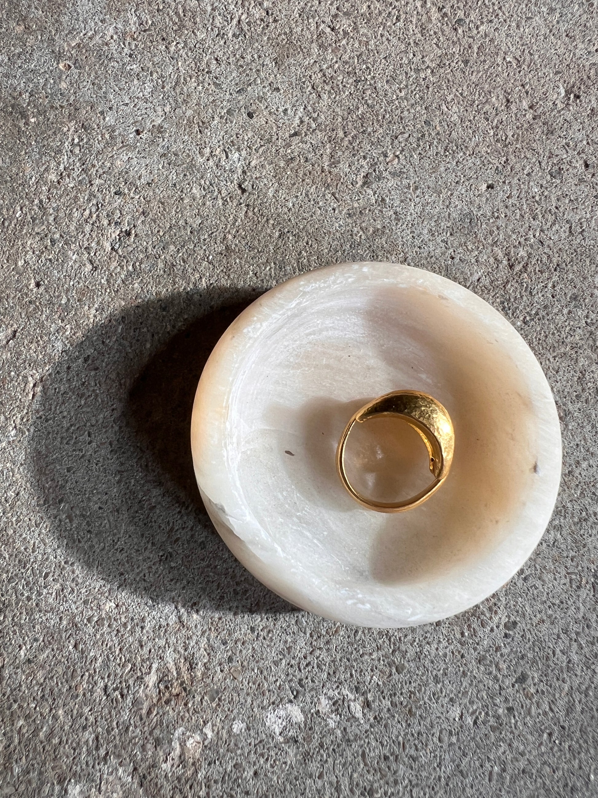 A gorgeous hand-hammered 18K gold ring with 3 stacked knife-edge segments joined by a fused double shank. Made by the iconic Greek family-owned jewelry brand founded by Ilias Lalaounis, they are known for their weaving together of ancient Greek motifs and manufacturing processes. From 1980s, this is a timeless example of their Neolithic minimalist jewelry style with its clean lines and hand hammered 18K gold. A true heritage piece!