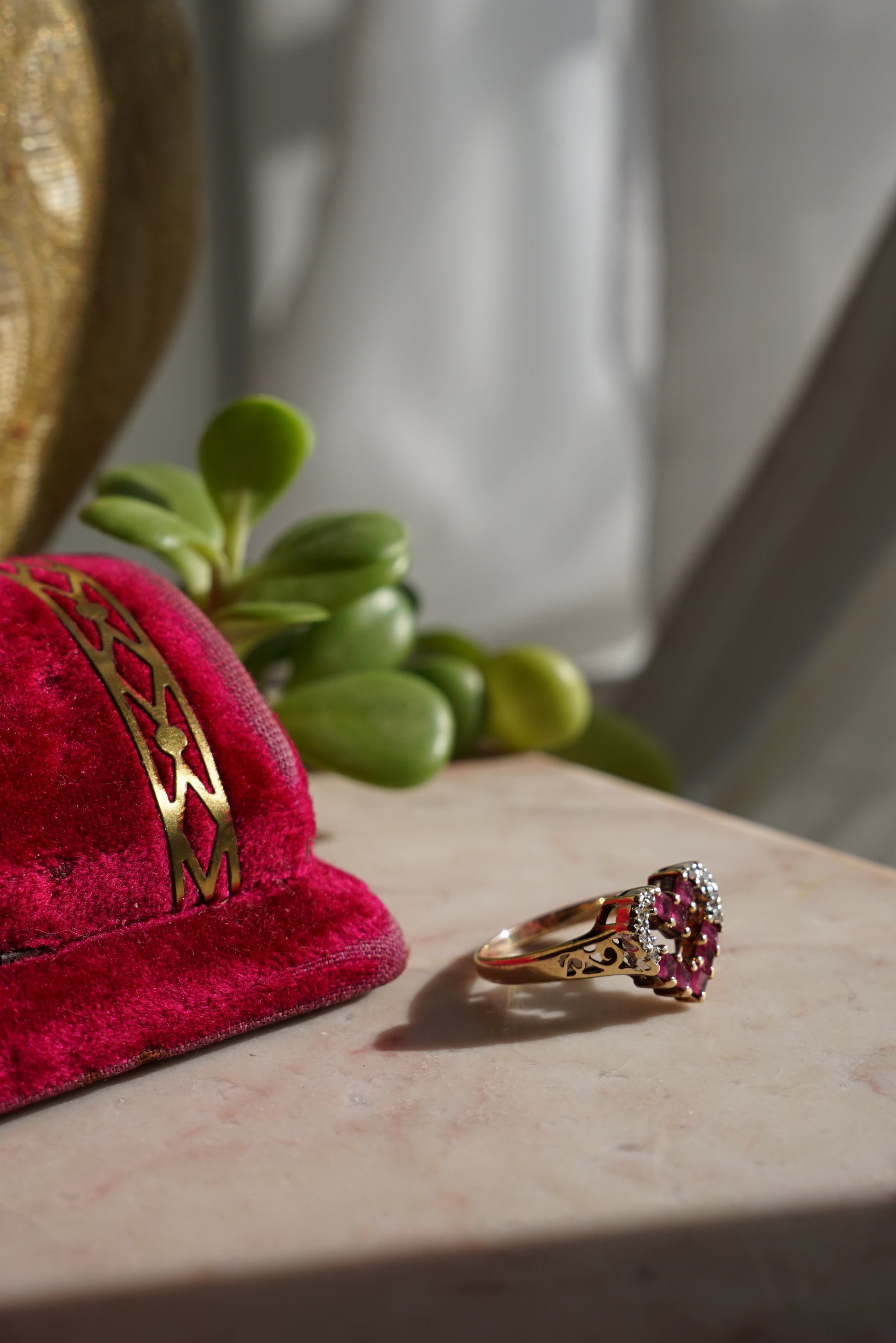 Vtg 14K Ruby and Diamond Open Heart Ring