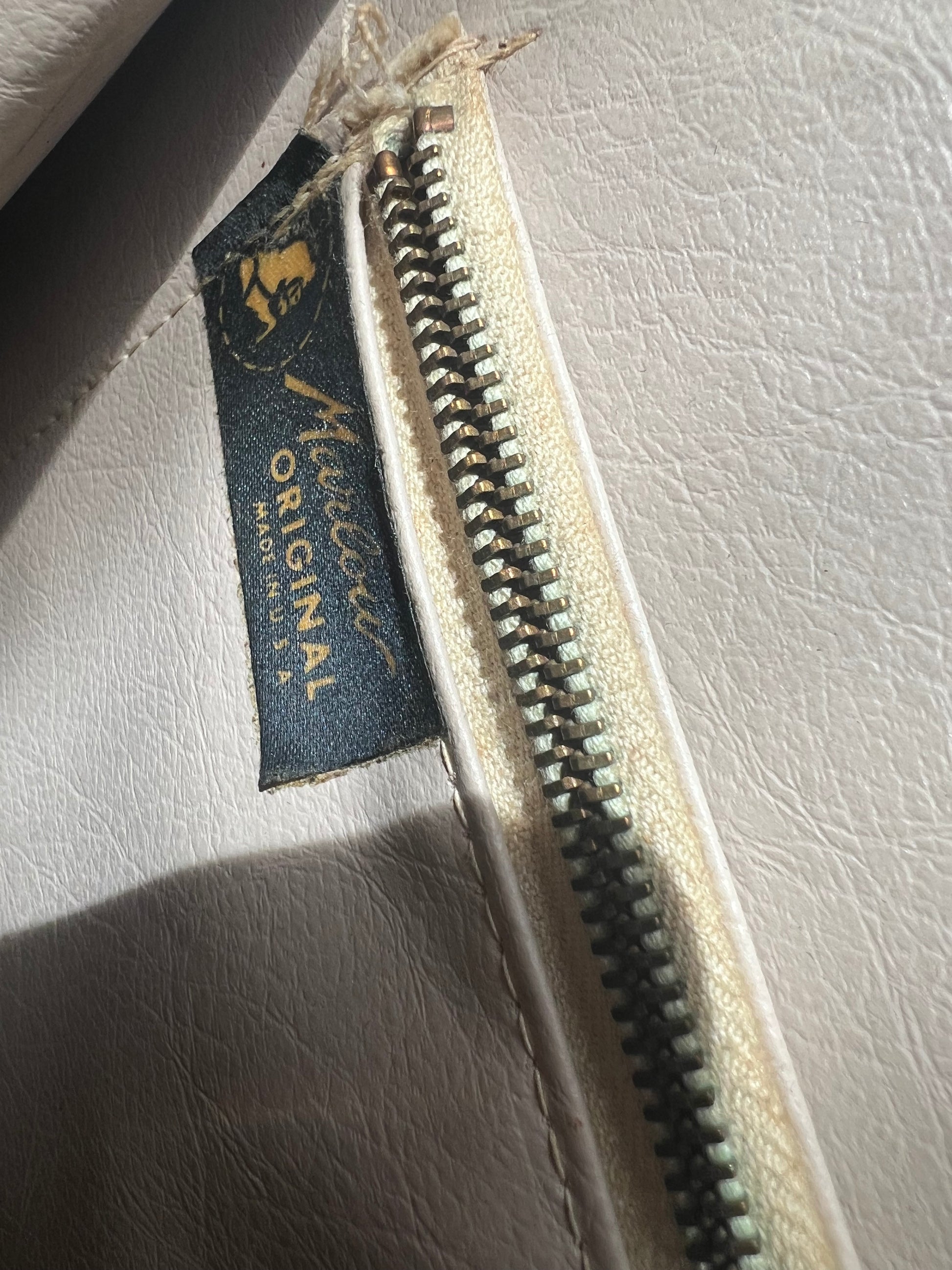 Rare large 2-sided 1950s dog and cat carpet bag by Marlow. Leather interior with inside pocket. Leather trim and leather strap with brass feet and hardware.