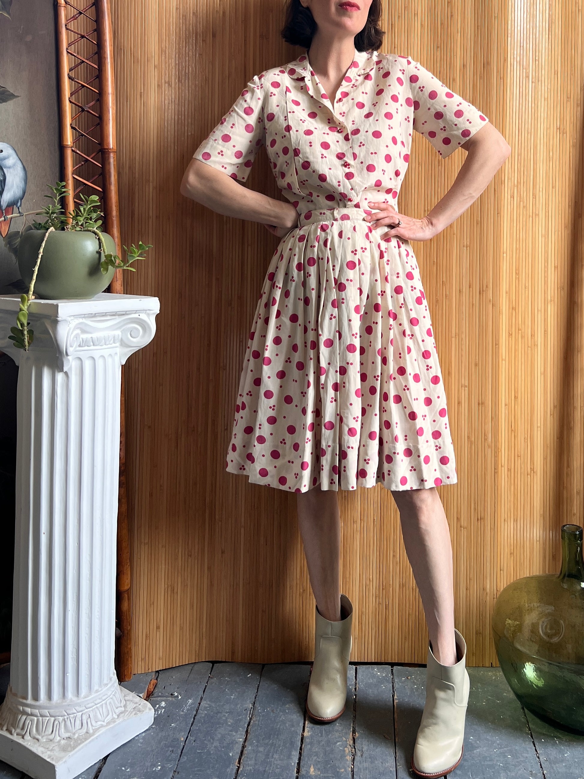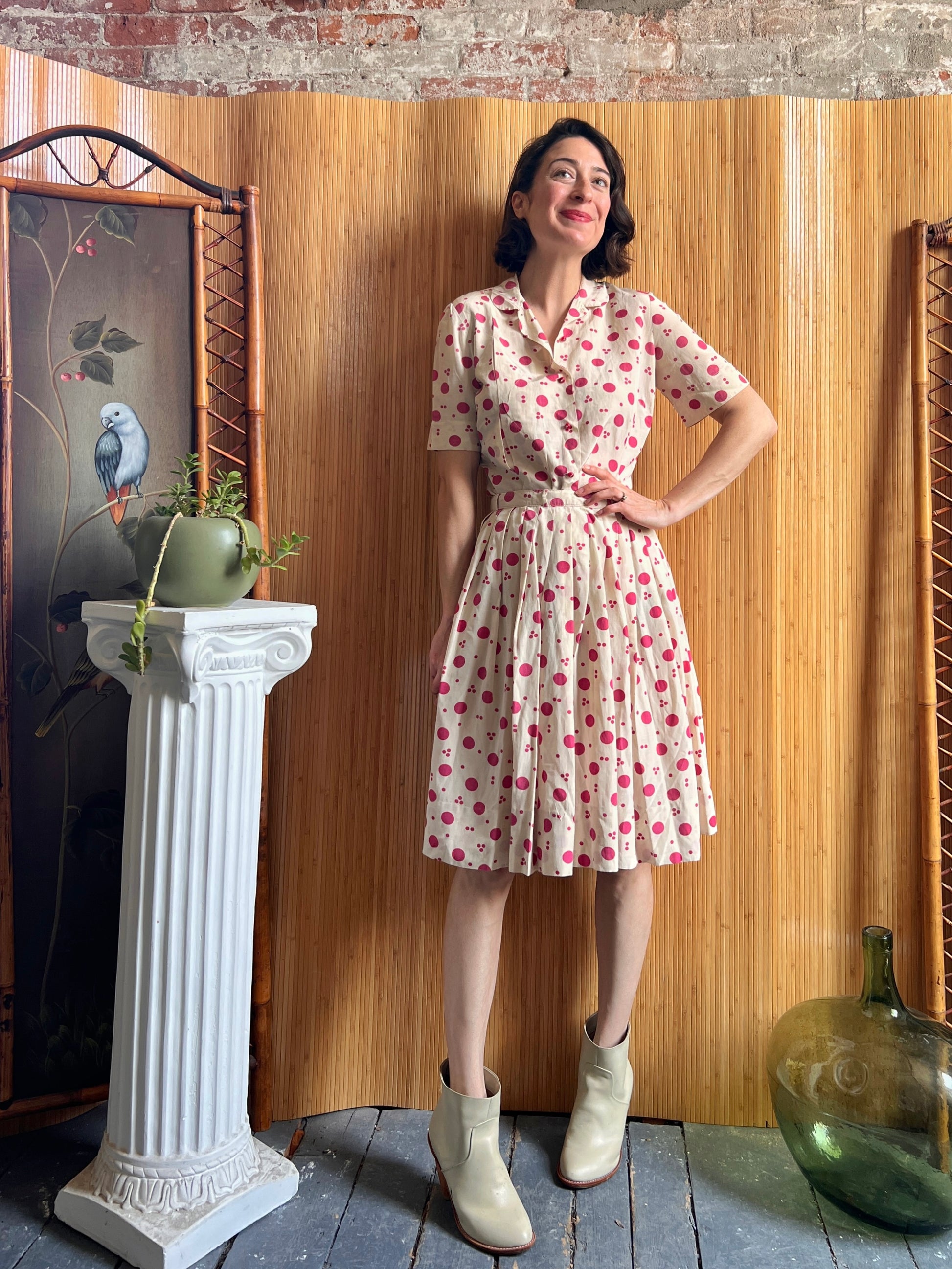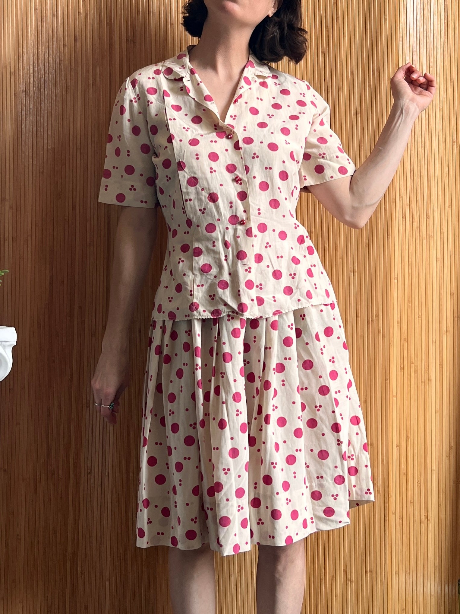 1940s Silk Polka Dot Skirt & Blouse Play Set XS