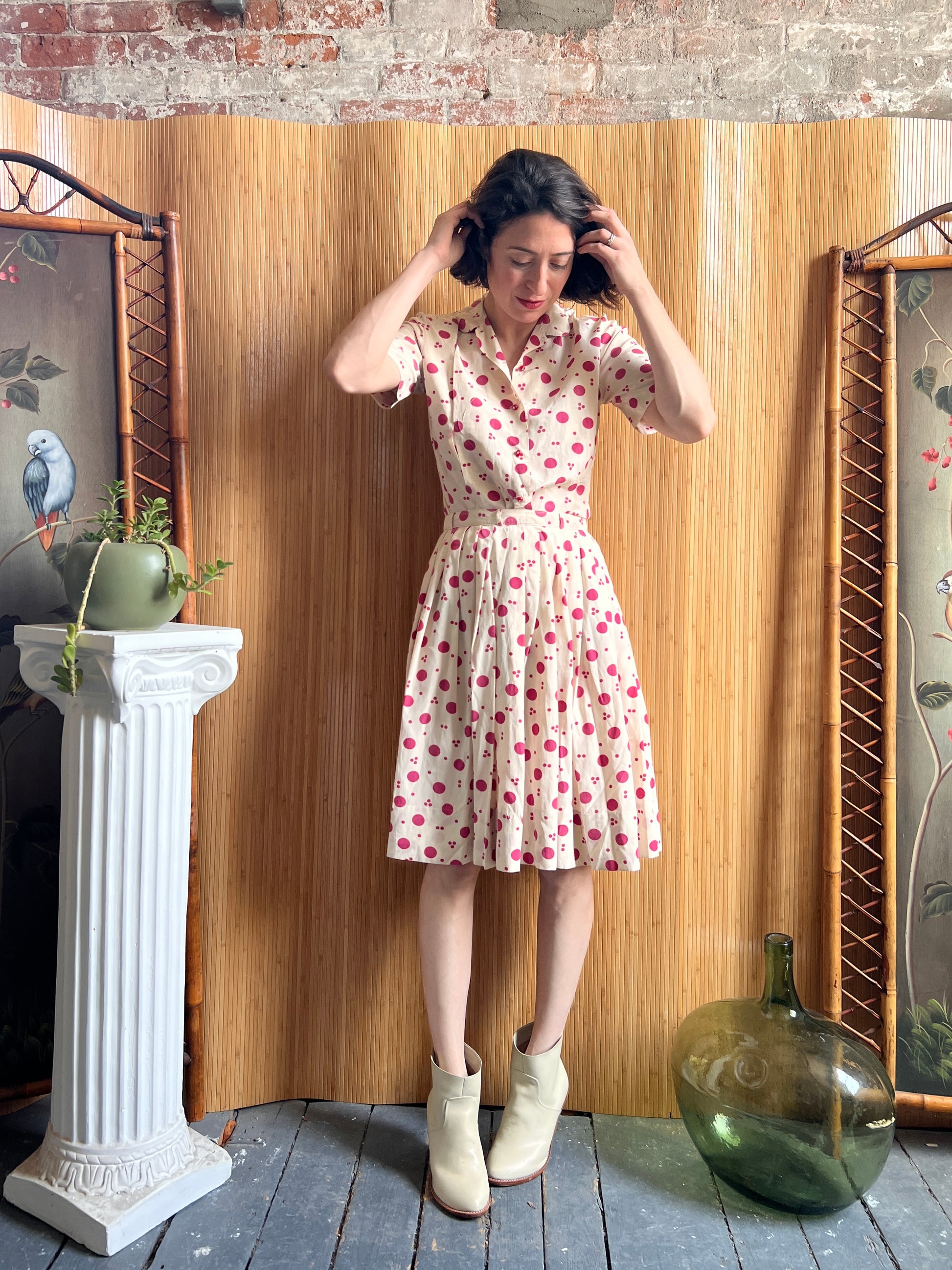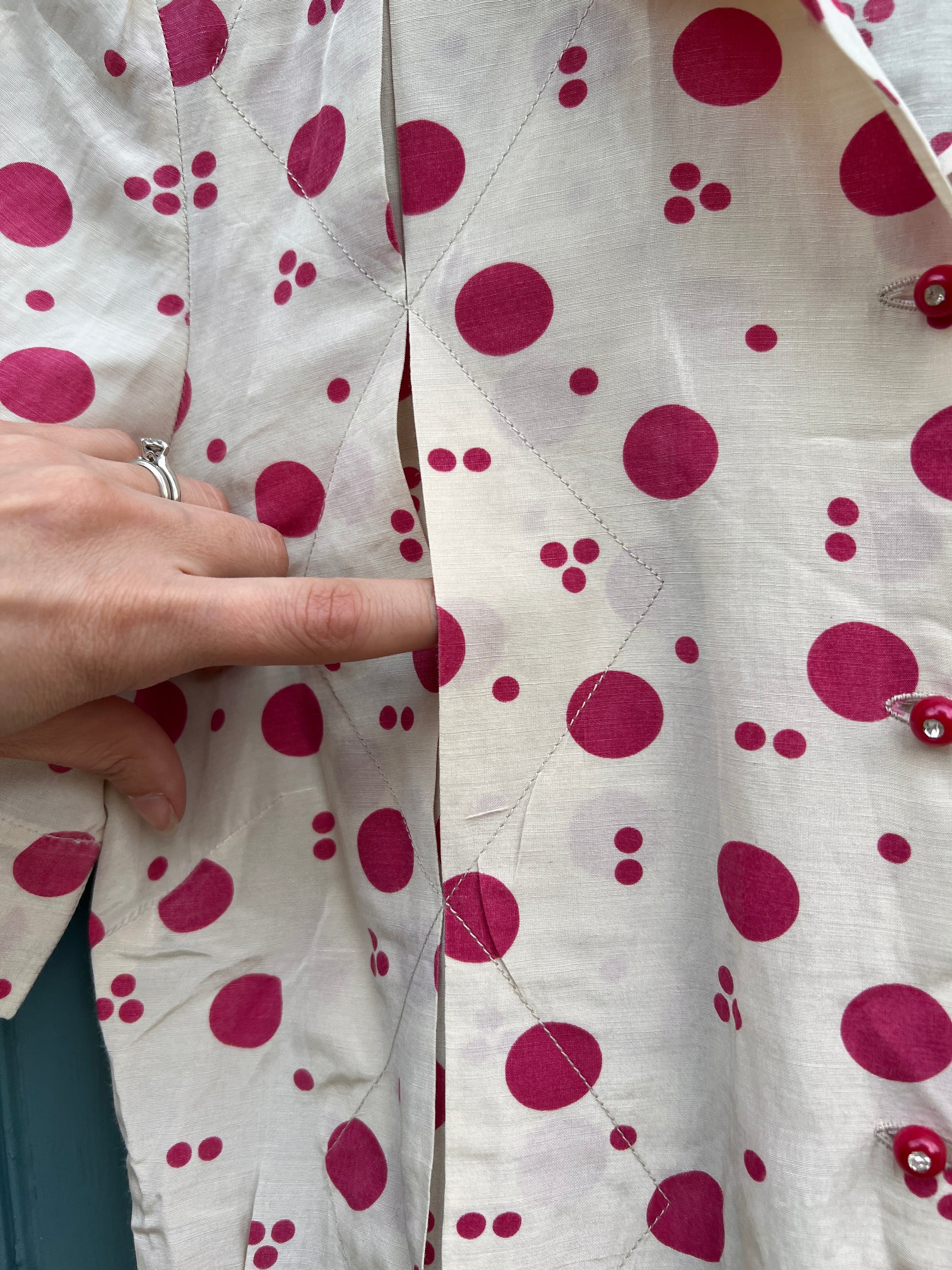 Condition: Excellent. Polka dots on collar have a slight fade compared to rest of garment but does not detract